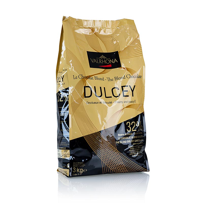 Blonde Schokolade - eine völlig neuartige Kreation aus dem Hause Valrhona. Die blondfarbige Dulcey weist eine cremige, einschmeichelnde Textur auf. Ihre biskuitartige, milde Süße, hinterlässt markante Noten von Mürbeteig mit einem Hauch von Salz. Mit intensiven Aromen passt Dulcey besonders gut zu Karamell, Kaffee und Haselnüssen sowie zu wenig sauren gelben Früchten wie Mango, Banane und Aprikose. Die Grundidee zu dieser neuen Schokoladenfamilie ist durch einen glücklichen Zufall entstanden. Frederic Bau, aus der Ecole du Grand Chocolat Valrhona, hatte schlicht weiße Ivoire-Schokolade in der Bain-Marie vergessen. Nach Jahren der Weiterentwicklung kann nun mit Dulcey ein einzigartiges Produkt mit ganz ungewöhnlichen Merkmalen in die Welt der Patisserie Einzug halten.