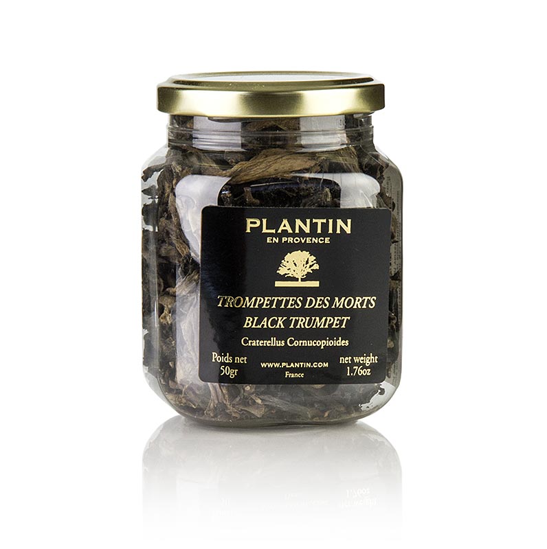 Herbsttrompeten getrocknet. Zutaten: Herbsttrompeten. Pilze mind. 1 Std in warmen Wasser einweichen, danach gut waschen. Nur gut durch gegart verzehren. Trocken lagern. Produkt aus Frankreich.