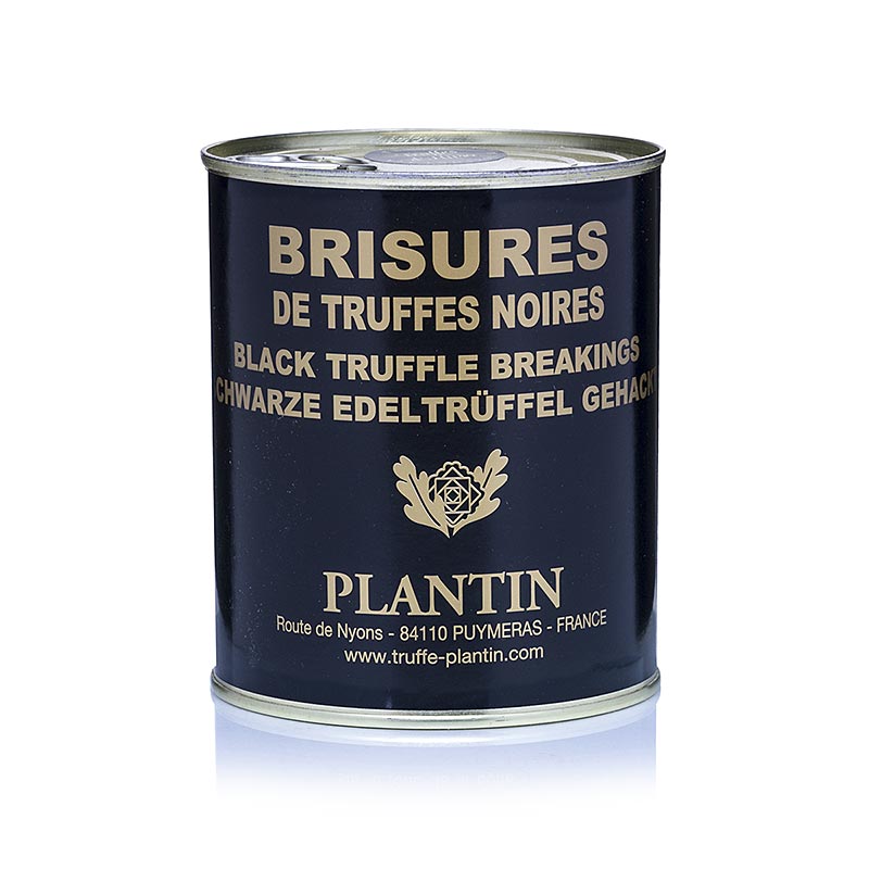 Winter-Edeltrüffel, ganz fein gehackte Stücke; in Salz und Trüffelsaft eingekocht. Vollkonserve. Sie können wie frische Trüffel verwendet werden und sind schon gebrauchsfertig. Bestens geeignet zur Herstellung von Terrinen, Pasteten, an Saucen oder zu Frischkäse. Auch erhältlich in 50g, 100g und 200g. Abtropfgewicht: 400g