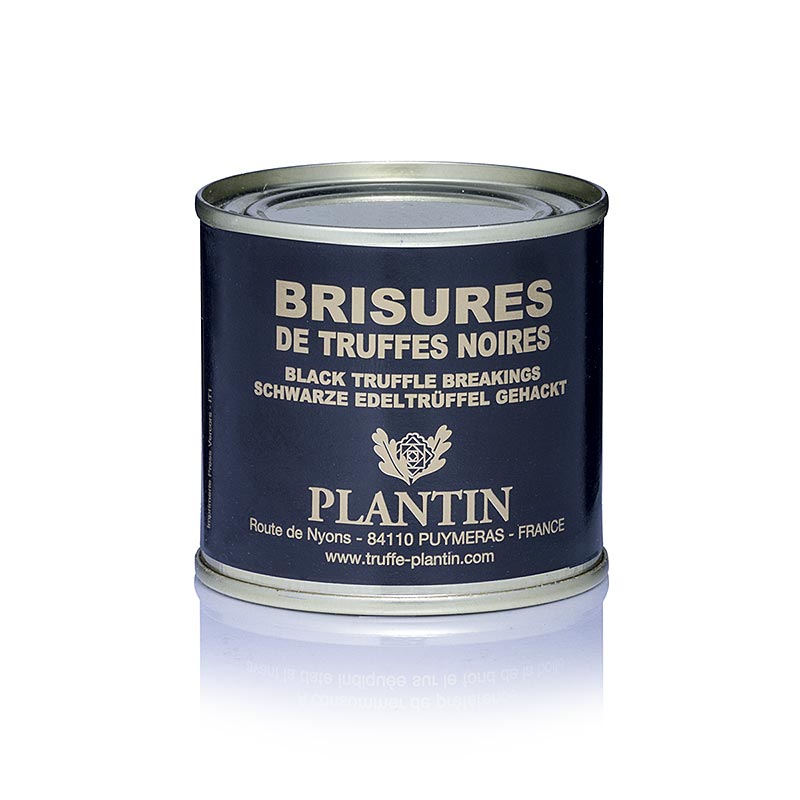 Winter-Edeltrüffel, ganz fein gehackte Stücke; in Salz und Trüffelsaft eingekocht. Vollkonserve. Sie können wie frische Trüffel verwendet werden und sind schon gebrauchsfertig. Bestens geeignet zur Herstellung von Terrinen, Pasteten, an Saucen oder zu Frischkäse. Auch erhältlich in 100g, 200g und 400g. Abtropfgewicht: 50g