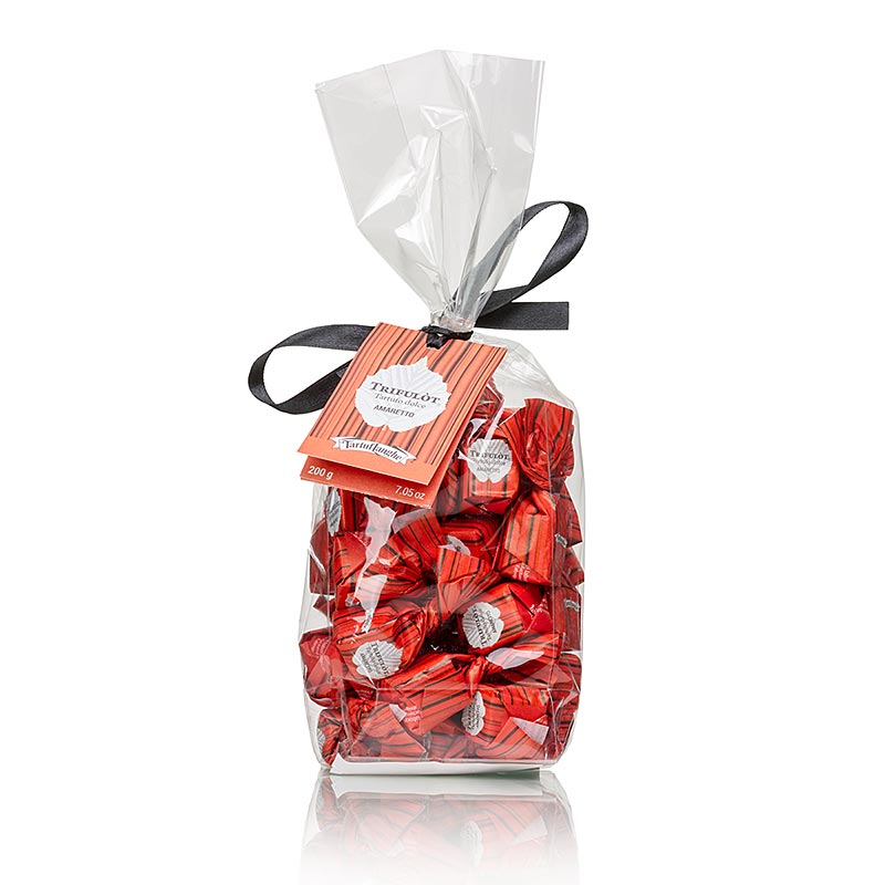Diese Pralinen sind die reinste Sünde. Dunkle Schokolade vermählt mit sizilianischen Mandeln und Amaretto-Biskuits. Eine Dolce dAlba-Praline, nur aus besten Zutaten und in der exquisiten Tartuflanghe-Qualität. Tartuflanghe Trüffelpralinen gibt es auch mit aromatischen Piemont-Haselnüssen und dunkler Schokolade, weißer Schokolade oder mit echten schwarzen Sommertrüffeln oder als Kaffee-Kakaobohnen-Praline. Absolut lecker und eine schöne Geschenkidee!