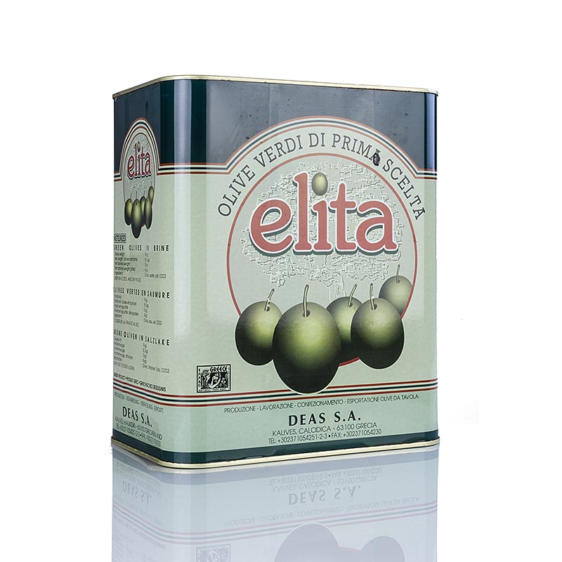 Diese Oliven sind in Salzlake eingelegt und nicht weiter gewürzt. Sie eignen sich für Salate oder als Beilage, da sie mit ihrem milden Geschmack nicht vom Wesentlichen ablenken. Sie sind ca. 4 cm groß. Grüne Oliven werden noch unreif gepflückt. Vor dem Einlegen in Salzlake werden sie mit Lauge behandelt. Durch dieses Verfahren wird der Bitterstoffgehalt der noch nicht reifen Früchte reduziert und die Konsistenz des Fruchtfleisches wird verbessert. Die Oliven entwickeln ein charakteristisches Aroma und sind eine beliebte Deko zu kalten Speisen; besonders zu pikanten Saucen. Ebenso sind sie eine beliebte Beigabe zu Spezialitäten aus den Mittelmeerländern