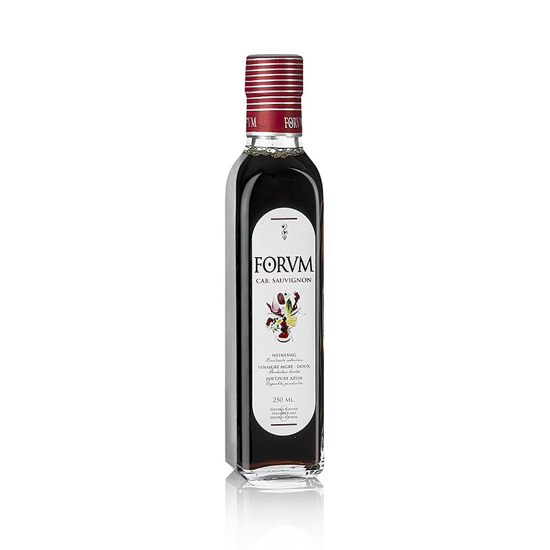 FORVM V. Agridulce de Cabernet Sauvignon ist eine limitierte spanische Spezialität, die bis zur Reife in Eichenholzfässern lagert. Sein Bouquet ist mild und ausgewogen kräftig. Hervorragend zu Fleischgerichten sowie in der kalten Küche. Die Essige von FORVM sind in der gehobenen Gastronomie auf der ganzen Welt bekannt und fester Bestandteil des Menüs bei der Verleihung des Nobelpreises in Stockholm. FORVM Essige sind ungefiltert, daher ist der Bodensatz normal.
