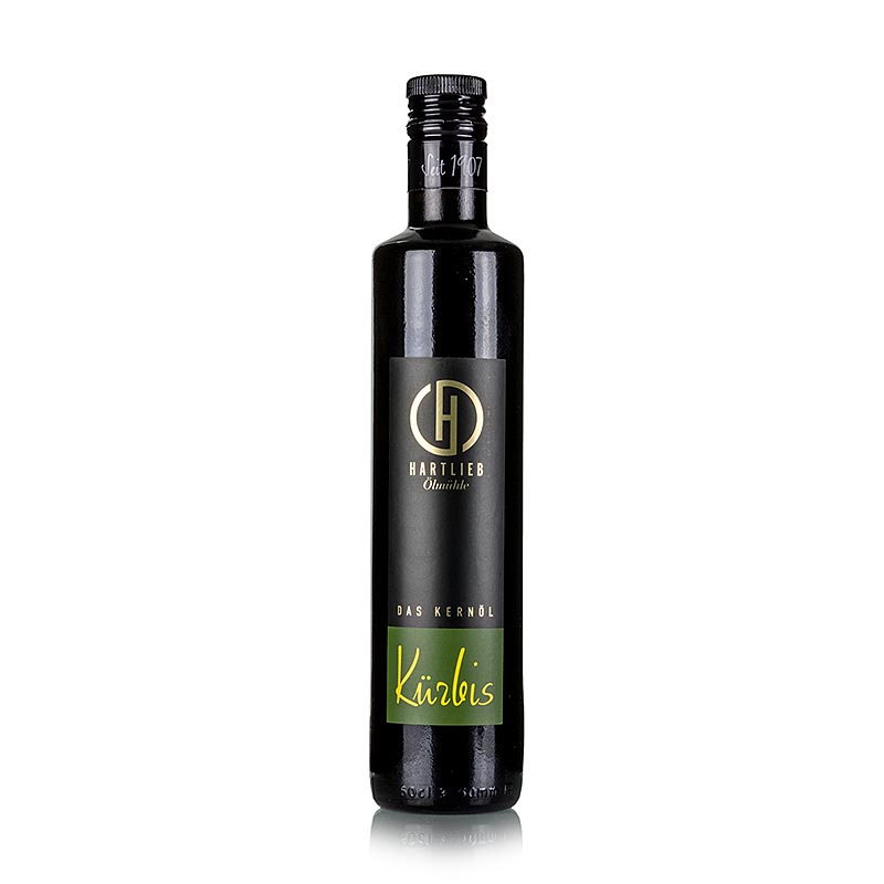 Etwa 35 Kürbisse müssen aufbereitet werden um 1 Liter Kürbiskernöl zu gewinnen. Dafür werden die Kerne fein zerhackt und zu einem weichen, tiefgrünen, klebrigen aber intensiv duftenden Brei verarbeitet. Dem Brei werden heißes Wasser und Salz beigefügt. Das Wasser transportiert die nötige Wärme und das Salz würzt und trennt das Eiweiß der Kerne vom Öl. Die Kernmasse wird dann bei 80°-90° geröstet. so dass das Wasser verdampft und das Eiweiß wird fest. Nun lässt sich aus der Kernmasse das dunkelgrüne Öl pressen, wobei die schweren Trübstoffe auf natürliche Weise langsam absinken. Das intensiv-nussige Kürbiskernöl harmoniert bestens mit Suppen, Bohnen, Eierspeisen, in Kürbiskernpesto, zu Salaten und zu Desserts, wie beispielsweise hochwertigem Vanilleeis.