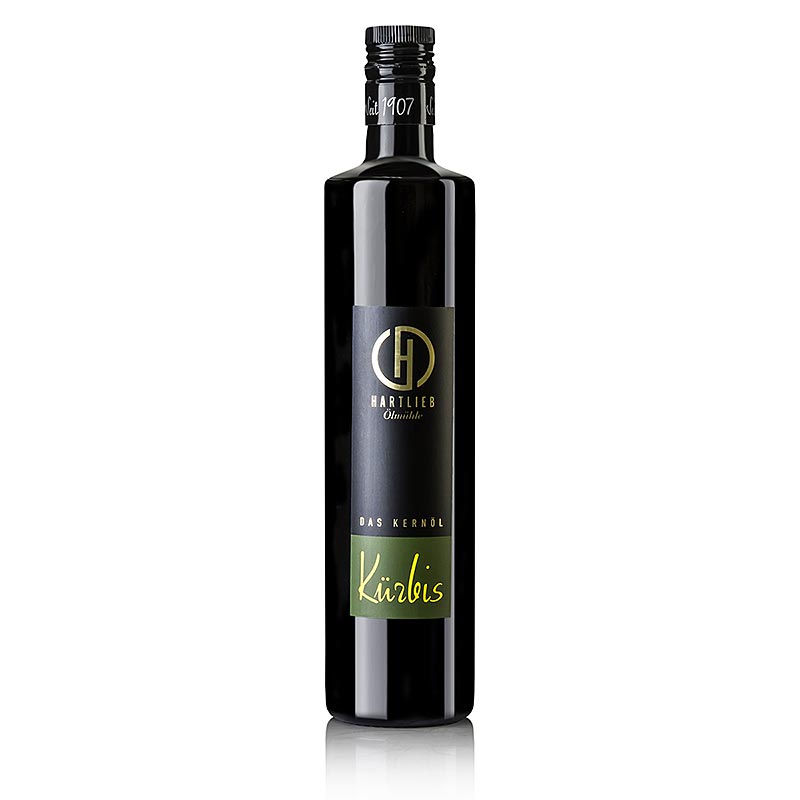 Etwa 35 Kürbisse müssen aufbereitet werden um 1 Liter Kürbiskernöl zu gewinnen. Dafür werden die Kerne fein zerhackt und zu einem weichen, tiefgrünen, klebrigen aber intensiv duftenden Brei verarbeitet. Dem Brei werden heißes Wasser und Salz beigefügt. Das Wasser transportiert die nötige Wärme und das Salz würzt und trennt das Eiweiß der Kerne vom Öl. Die Kernmasse wird dann bei 80°-90° geröstet. so dass das Wasser verdampft und das Eiweiß wird fest. Nun lässt sich aus der Kernmasse das dunkelgrüne Öl pressen, wobei die schweren Trübstoffe auf natürliche Weise langsam absinken. Das intensiv-nussige Kürbiskernöl harmoniert bestens mit Suppen, Bohnen, Eierspeisen, in Kürbiskernpesto, zu Salaten und zu Desserts, wie beispielsweise hochwertigem Vanilleeis.