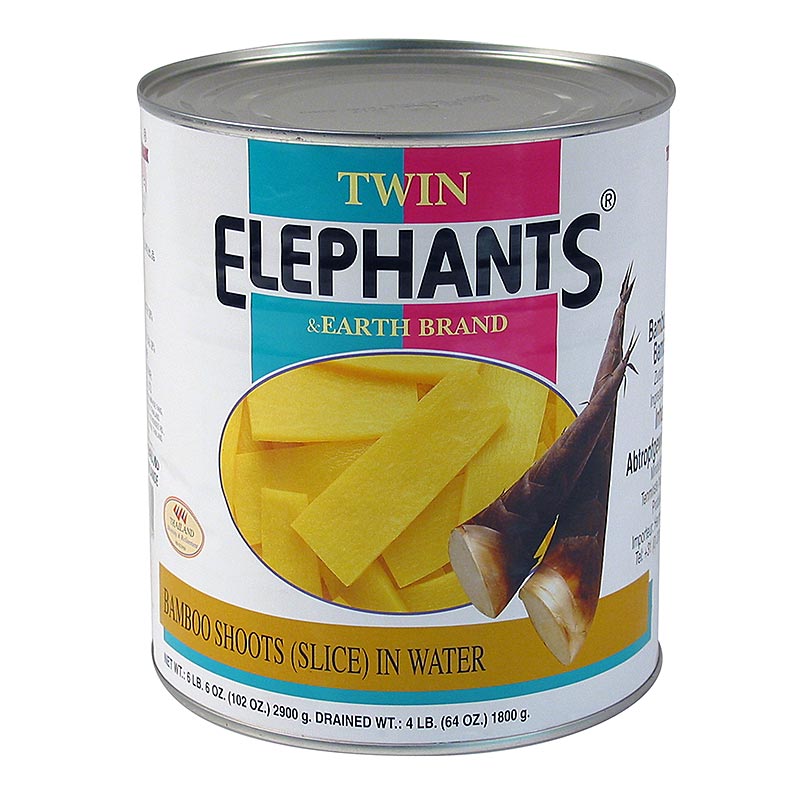 Bambussprossen geschnitten in Wasser. Zutaten: 61% Bambussprossen, Wasser. Produkt aus China.