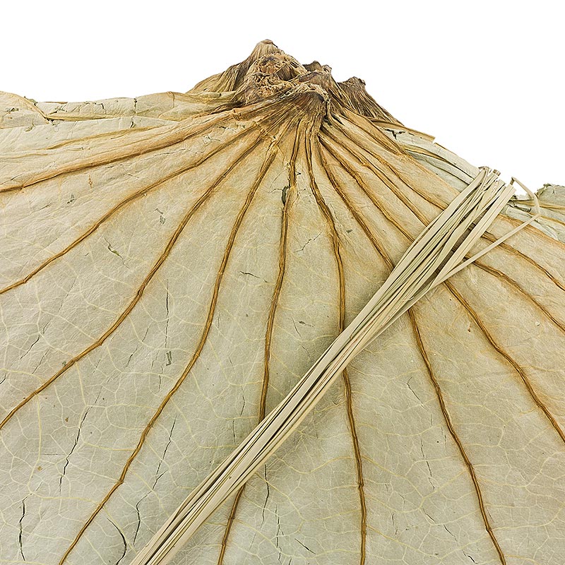 Getrocknete ganze Lotusblätter. Trocken lagern. Eigenschaften: Es müssen keine Nährwerte angegeben werden.