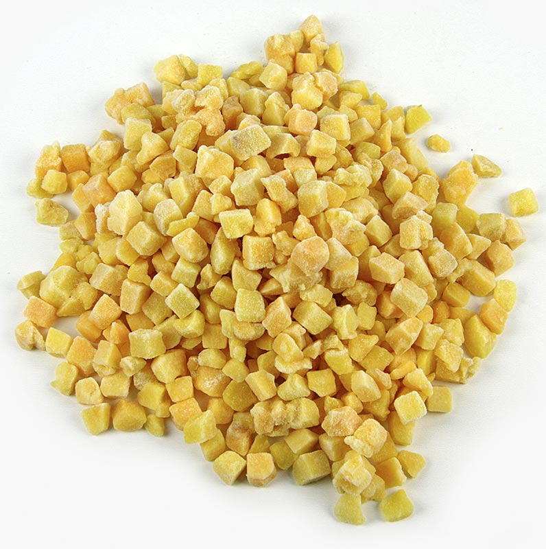 Pfirsiche gewürfelt, tiefgefroren. Zutaten: Pfirsiche, 0,4% Zitronensäure, Ascorbin. Lagerung bei mindestens -18°C. Nach dem Auftauen nicht wieder einfrieren. Aufgetaute Früchte bei +4°C lagern und innerhalb von 24 Stunden verbrauchen.