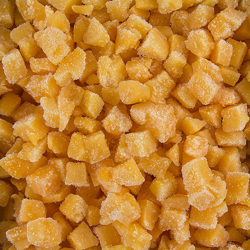 Pfirsiche gewürfelt, tiefgefroren. Zutaten: Pfirsiche, 0,4% Zitronensäure, Ascorbin. Lagerung bei mindestens -18°C. Nach dem Auftauen nicht wieder einfrieren. Aufgetaute Früchte bei +4°C lagern und innerhalb von 24 Stunden verbrauchen.