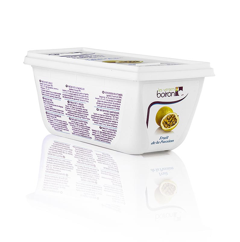 Passionsfrucht Fruchtpüree, tiefgefroren. Zutaten: 100% Passionsfrucht. 13°Brix +/-2°. Lagerung bei mindestens -18°C. Nach dem Auftauen im Kühlschrank bei +2°C bis +4°C aufbewahren und innerhalb von 15 Tagen verbrauchen. Nach dem Auftauen nicht wieder einfrieren. Hergestellt in Frankreich.
