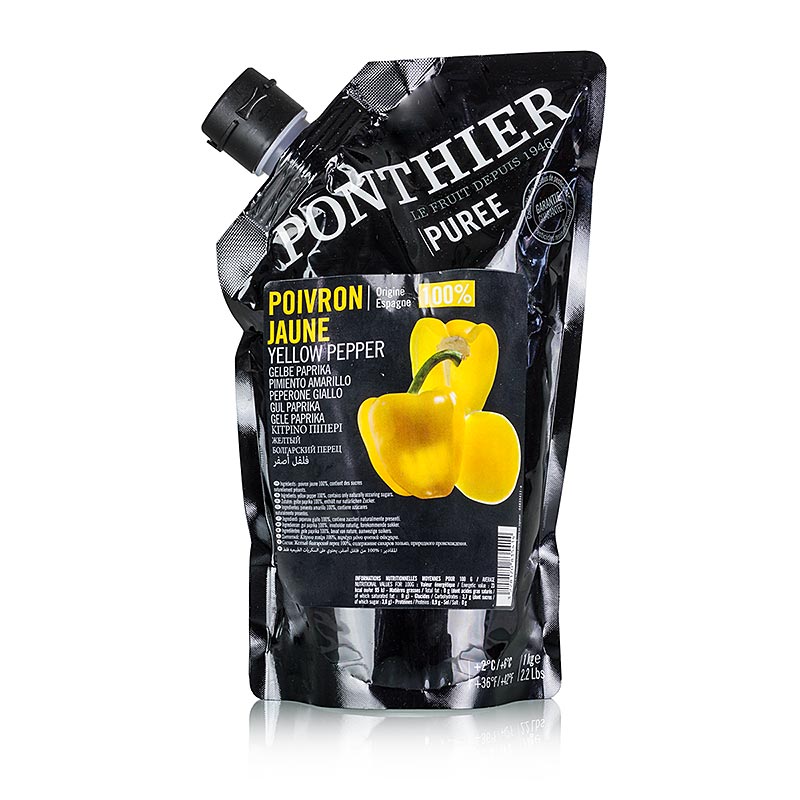 Gelbes Paprika Püree. Zutaten: 100% gelbe Paprika (enthält nur natürlichen Zucker). Vor Gebrauch gut schütteln. Kühl bei +2°C bis +6°C lagern. Nach dem Öffnen im Kühlschrank aufbewahren und innerhalb von 5 Tagen verbrauchen. Hergestellt in Frankreich.
