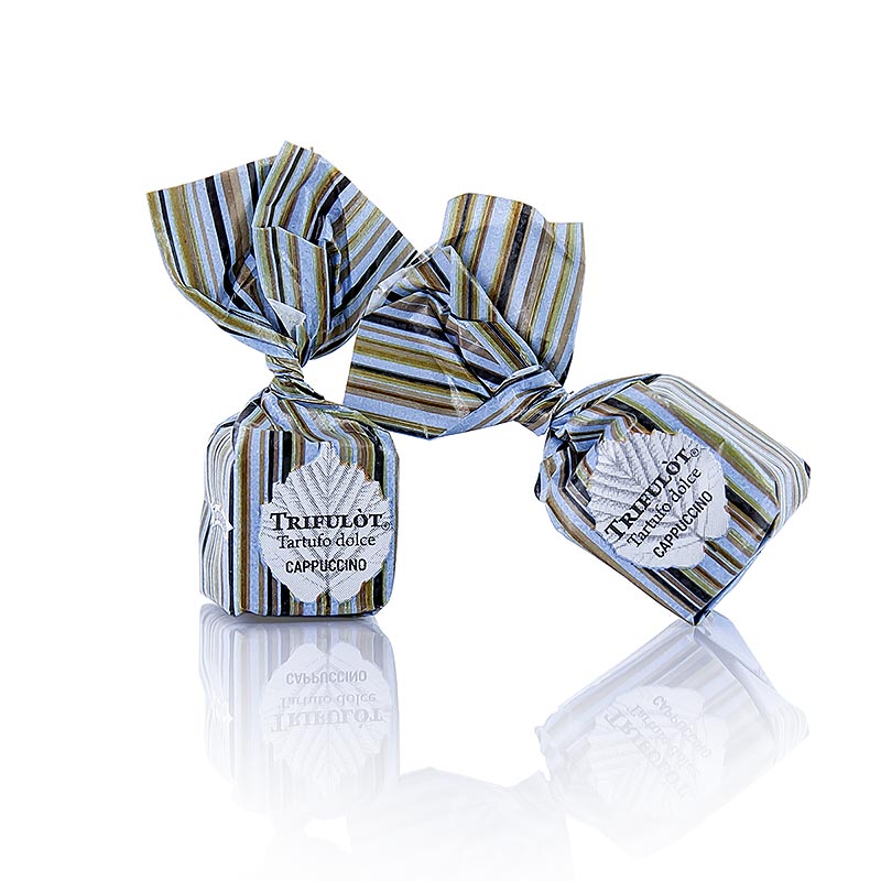 Diese Pralinen sind die reinste Sünde. Weiße Schokolade mit sizilianischen Mandeln kombiniert mit Kaffee und Kakaobohnen Stückchen. Eine Dolce dAlba- Praline, durch und durch aromatisch und nur aus besten Zutaten und in der exquisiten Tartuflanghe Qualität. Tartuflanghe Trüffelpralinen gibt es auch mit aromatischen Piemont Haselnüssen und dunkler Schokolade, weißer Schokolade oder mit echten schwarzen Sommertrüffeln oder mit Amaretto-Mandel Geschmack. Absolut lecker und eine schöne Geschenkidee!