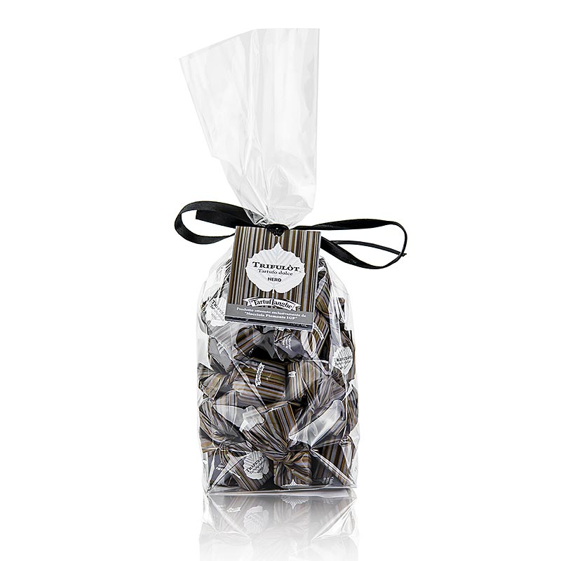 Diese Pralinen sind die reinste Sünde. Beste Piemont-Haselnüsse vermählt mit dunkler Schokolade. Tartuflanghe verarbeitet für die Dolce dAlba nur die Haselnuss-Varietät " Tonda Gentile delle Langhe" mit der geschützten Herkunftsbezeichnung I.G.T. Sie wird in der Gegend um Cortemilia, im südwestlichen Piemont kultiviert. Tartuflanghe Trüffelpralinen gibt es auch mit weißer Schokolade, mit echten schwarzen Sommertrüffeln, mit Amaretto-Mandel- Geschmack oder als Kaffee- Kakaobohnen-Praline. Absolut lecker und eine schöne Geschenkidee!