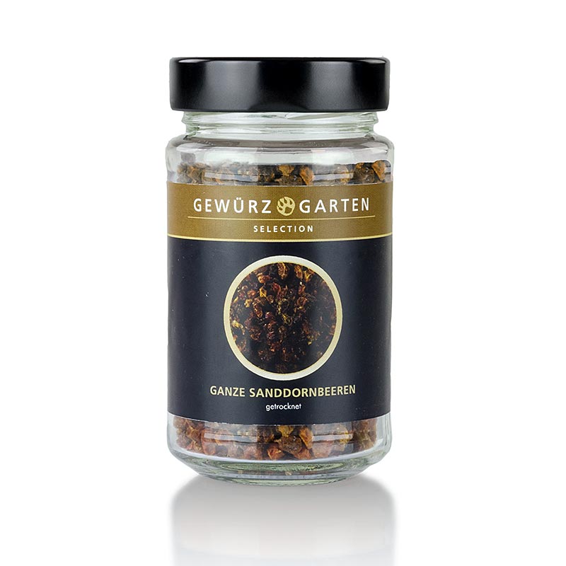 Sanddornbeeren ganz, getrocknet. Zutaten: Sanddornbeeren (Hippophae Fruct. tot.). Kühl und trocken lagern. Eigenschaften: Es müssen keine Nährwerte angegeben werden.