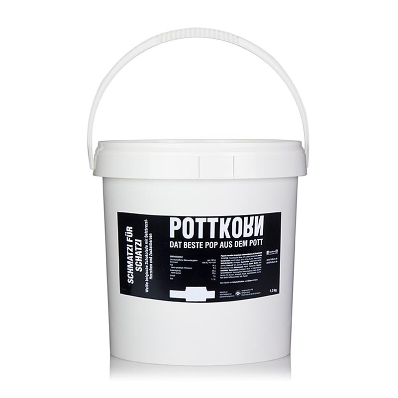 Etwas ganz Besonderes für unsere Liebsten: Mit weisser belgischer Schokolade überzogenes Popcorn, versüßt mit kleinen Zuckerherzen und Salzbrezeln. Gib mir noch eins, Schatzi