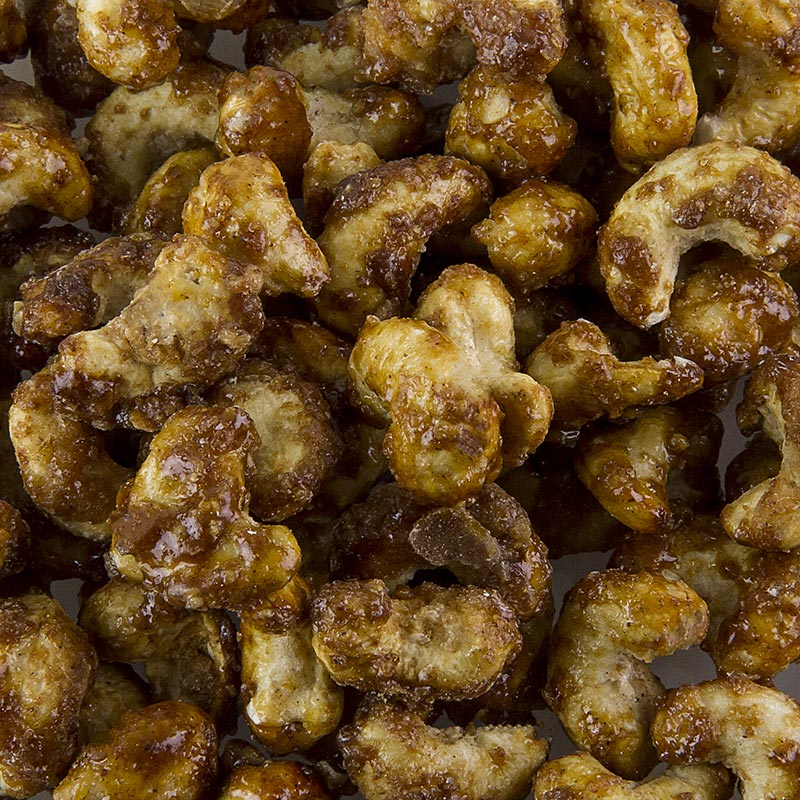 Gebrannte Cashewkerne mit Zimt und Bourbon Vanille. Zutaten: 66,1% CASHEWKERNE, Zucker, 0,7% Zimt, 0,1% echte Bourbon Vanille. Kühl, trocken und lichtgeschützt lagern.