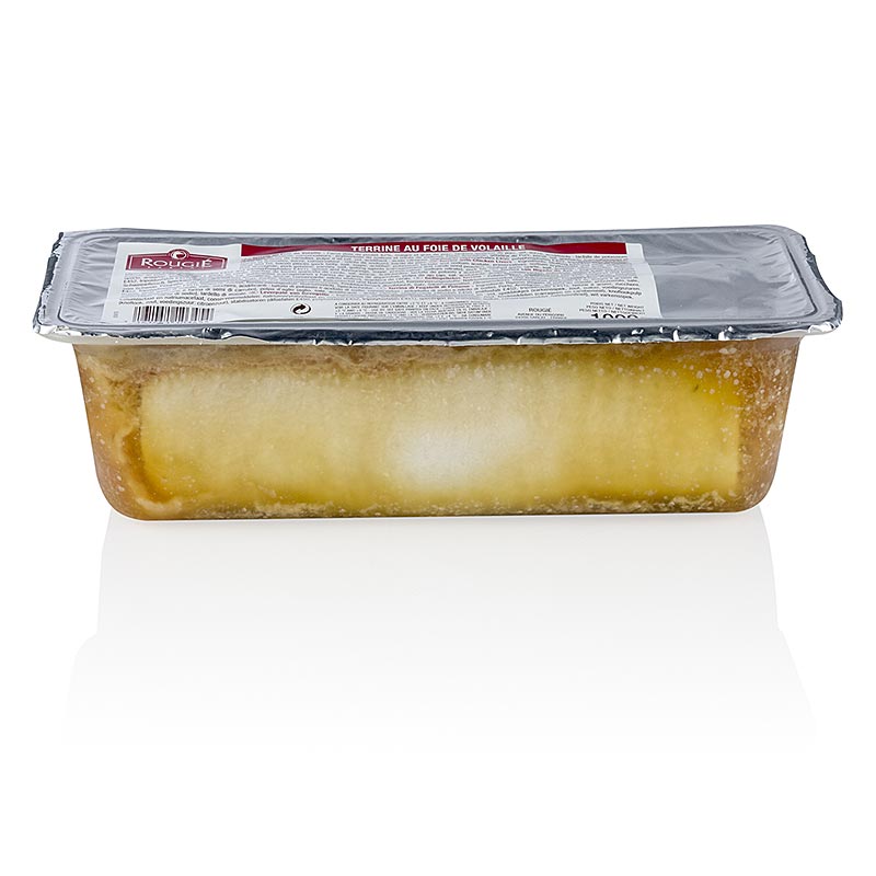 Die Festigkeit und der gute Halt des Produkts erlauben eine saubere Tranchierung und eine gute gepflegte Präsentation. Der Aspekt der größeren Fleischstücke ermöglicht Ihnen eine rustikale und authentische Präsentation einer "Terrine Charcutiére". Eine runde und handwerklich wirkende Scheibenform im Stil der "Terrine Saveurs" von Rougie. Die Geflügelleber-Terrine garantiert Ihnen einen hohen Anteil an Leber (42%) in Form von leicht erkennbarem Stücken und bietet Ihnen ein Maximum an Geschmack und Aroma.