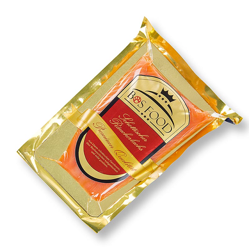 Schottischer Räucherlachs verdankt seine außergewöhnliche Qualität einer langen Tradition und besonderem Können bei der Herstellung. Der Lachs stammt aus schottischer Aquakultur, wurde mit Buchenscheiten kaltgeräuchert und ist mild gesalzen. Beim Lachfilet wird nach dem Räuchern Bauchlappen und Haut entfernt. Eine Delikatesse der besonderen Güte. Der schott. Räucherlachs hat wenig Fett, ist zart im Biss, zergeht auf der Zunge und entfaltet ein üppiges Aroma. Mit einem Wort: er vereint alle Vorzüge, die wahre Kenner von einem Lachs erwarten. Unser Preis basiert auf dem angenommenen Gewicht von 0.4 KG
