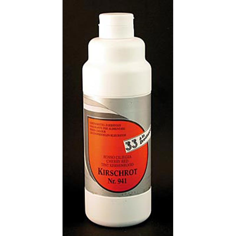 Lebensmittelfarbe: Kirschrot, flüssig. Hochkonzentriert; zum Einfärben von Zuckerwaren, Dekorationen und Überzügen, Feingebäck, Speiseeis und Dessertspeisen. Dosierung: ca 3g : 1000g.