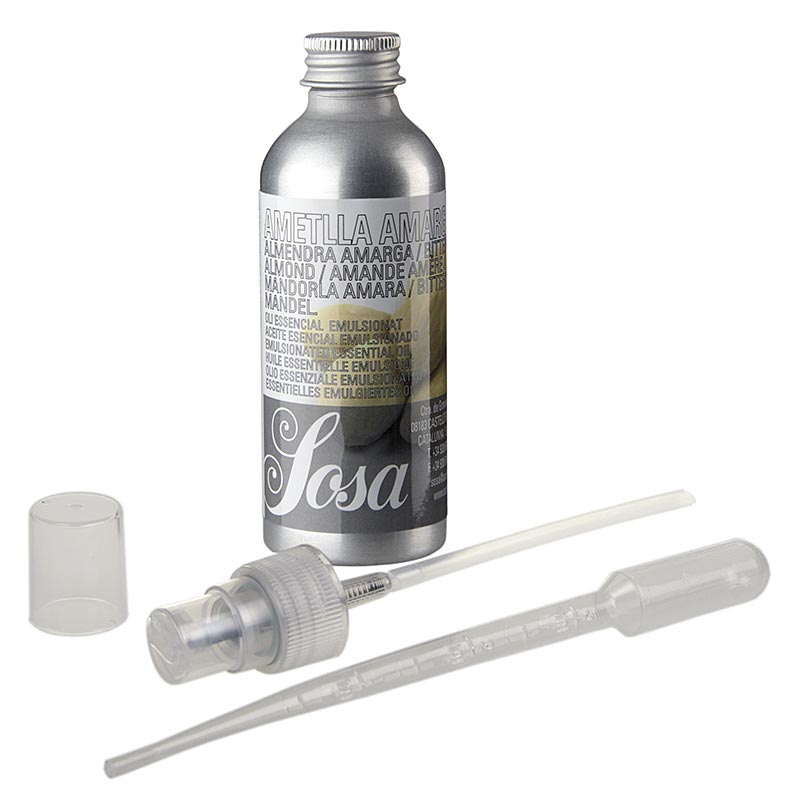 Die Firma Sosa ist in Spanien seit mehreren Generationen für ihre qualitativ hochwertigen Hilfsmittel für die Patisserie bekannt. In ihrem Sortiment findet man ausgezeichnete Nussmarks, gefriergetrocknete Früchte und Fruchtpulver, Aromaessenzöle, pulverisierte Milchprodukte, Grundmassen für Eis- und Sorbets, aber auch Texturgeber für die Molekularküche. Das Aroma ist sehr intensiv. Laut Angabe reichen 0,2g / Kilo Masse. Das Produkt wird mit Pipette und Sprühvorrichtung geliefert.