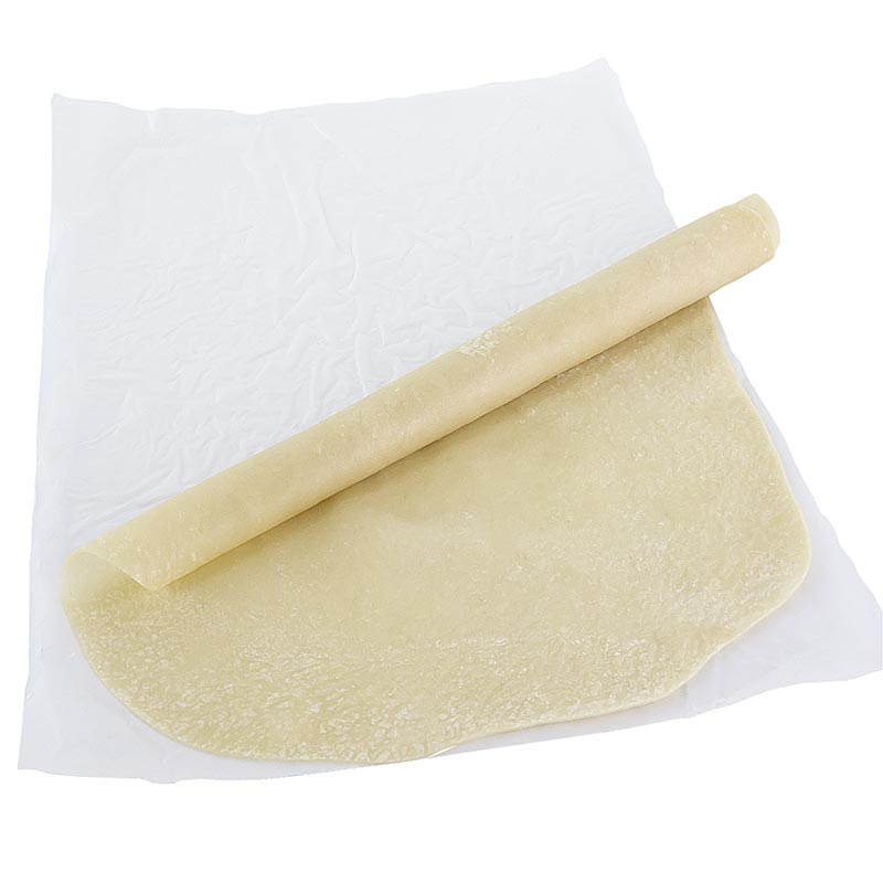 Dinkelteigboden für Flammkuchen, tiefgefroren. Zutaten: DINKELMEHL, Wasser, Rapsöl, Salz. Zubereitung: Das Wachspapier vor dem Verarbeiten entfernen anschließend den Flammkuchenboden bis auf einen äußeren Rand von ca. 0,5 cm mit ca. 100g einer gewürzten bzw. gesüßten Creme Fraiche gleichmäßig bestreichen und mit den Zutaten belegen. Backanleitung: Das beste Backergebnis wird ein einem vorgeheizten Pizza- bzw. Flammkuchenofen erreicht. Bei 250°C - +300°C Ober- und Unterhitze wird der Flammkuchen für 3 - 4 Minuten direkt auf dem Schamott- bzw. Granitstein kross gebacken. Alternativ: Im Heißluftdämpfer oder Backofen, ausgestattet mit einer Backplatte bzw. einem beschichteten Backblech. Lagerung bei mindestens -18°c. Nach dem Auftauen nicht wieder einfrieren. Eigenschaften: unter Schutzatmosphäre verpackt.
