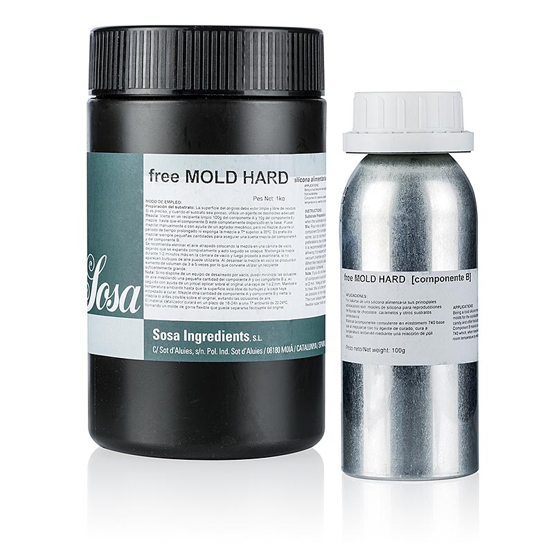2 Komponenten zum Herstellen fester Silikonformen für Lebensmittel. Inhalt: Elastomerbasis 7003 und Härter. Anwendung: Untergrundvorbehandlung: Die Oberfläche des Originals sollte sauber und frei von Schmutz sein. Bei Bedarf und wenn das Substrat porös ist, mit einem geeigneten Trennmittel behandeln. Mischen: In einem sauberen Behälter 100 g Komponente A und 10 g Komponente B schütten und mischen, bis die Komponente B vollständig in der Basis verteilt ist. Es kann von Hand oder mittels eines mechanischen Schüttlers vermischt werden. Mischen Sie in geeigneter Weise kleinere Mengen an, um eine gute Durchmischung der Komponenten A und B sicherzustellen. Es ist darauf zu achten, das die Temperatur beim Mischen +35°C nicht übersteigt. Es wird empfohlen eingeschlossene Luft mittels einer Vakuumkammer zu entfernen. Wenn Sie keine Vakuumkammer besitzen, können Sie Lufteinschlüsse durch Mischen einer kleinen Menge von Komponenten A und B vermeiden, die anschließend mit einem Pinsel dünn (1-2 mm pro Anwendung) auf die Originalform aufgetragen wird. Bei Raumtemperatur stehen lassen bis die Oberfläche angetrocknet ist. Mischen Sie nun eine weitere Menge von Komponente A und Komponente B an und gießen Sie die Mischung so schnell wie möglich auf das Original, um Lufteinschlüssen zu vermeiden. 18-24 Std bei einer Umgebungstemperatur von +22°C - +24°C Aushärten lassen. Die flexible Gummiform lässt sich nun leicht von der ursprünglichen Form entfernen.