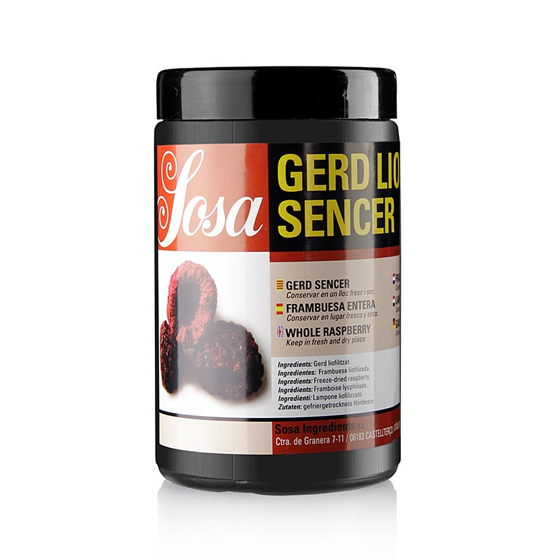 Ganze Himbeeren, gefriergetrocknet. Zutaten: Gefriergetrocknete Himbeeren. Kühl und trocken lagern. Hergestellt in Spanien.