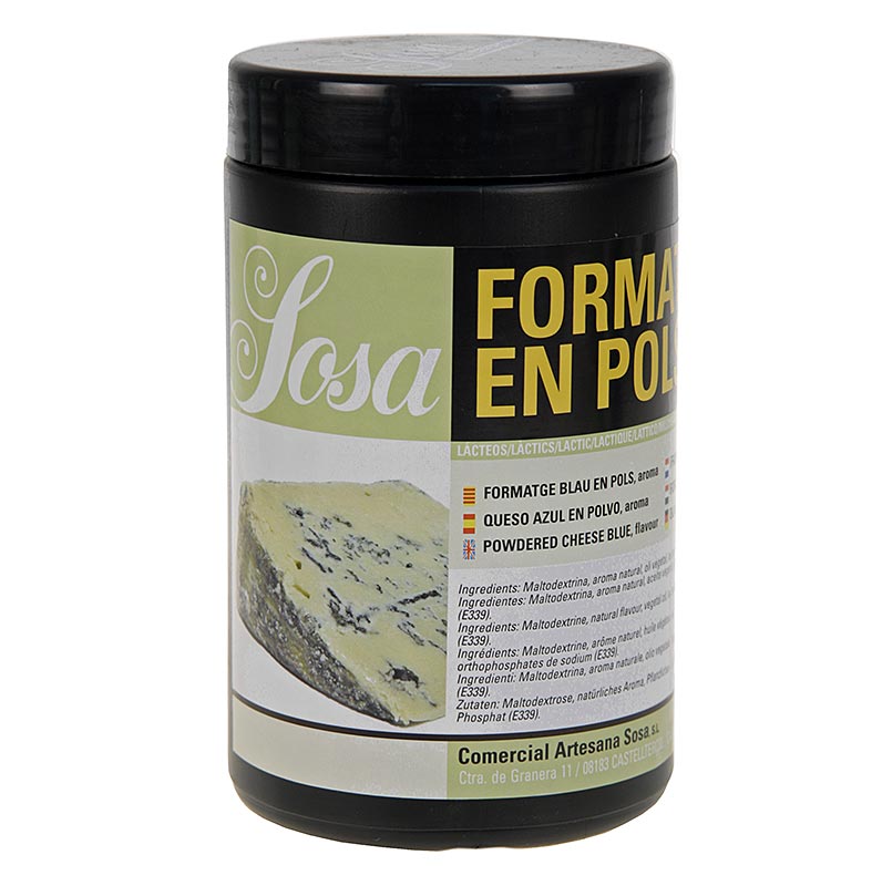 Natürliches Aroma TypBlauschimmelkäse. Zutaten: Maltodextrin, Aromaextrakte, natürliche Aromastoffe, pflanzliches Öl, LACTOSE, MOLKE, Natriumcaseinat, Gummi arabicum E414, Emulgator: E471, Calciumorthophosphate E341, Natriumorthophosphate E339. Dosierung: 10 - 30g/kg. Kühl und trocken lagern. Hergestellt in Spanien. Eigenschaften: Eiweiß aus tierischer Milch.