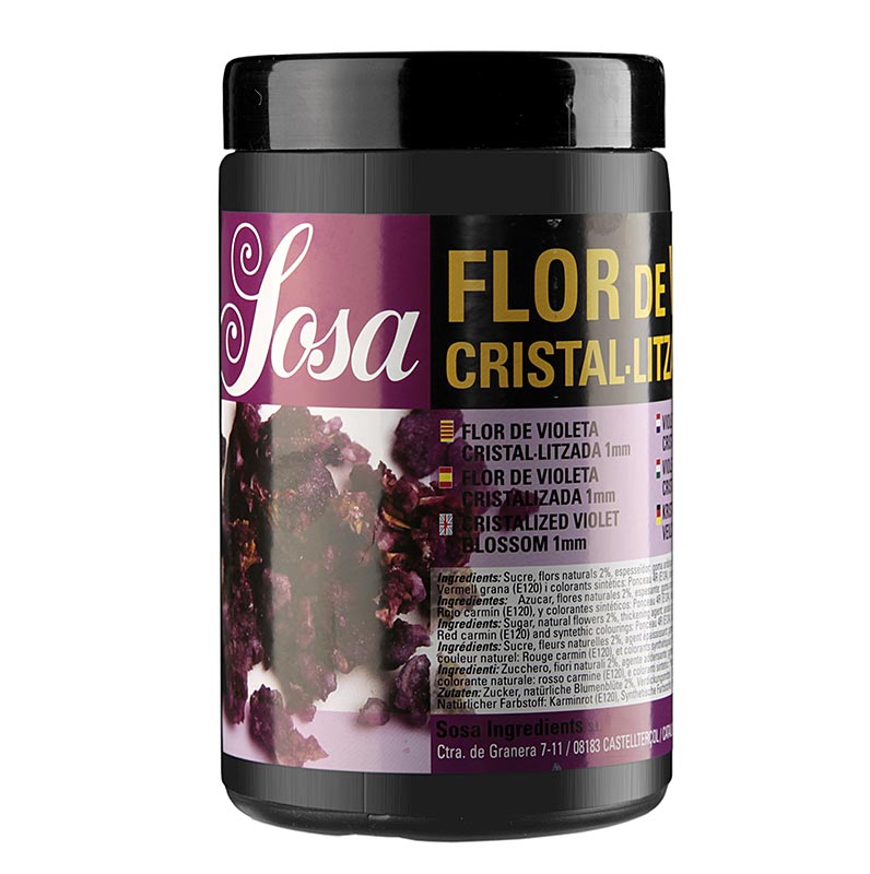 Veilchenblüten kristallisiert. Zutaten: Zucker, 2% natürliche Blumen, Verdickungsmittel: Gummi arabicum E414, Farbstoffe: Karmin rot E120, Ponceau 4R E124*, Indigotin E132, Aroma. *E124 kann die Aktivität und Aufmerksamkeit bei Kindern beeinträchtigen. Kühl und trocken lagern. Hergestellt in Spanien. Eigenschaften: Azofarbstoffe.