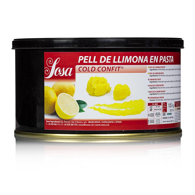 Zitronenschalen Paste. Zutaten: Zitronenschale, Zucker, Wasser, Säuerungsmittel: Citronensäure E330, Ascorbinsäure E300. Nach dem Öffnen bei +2°C bis +6°C lagern. Hergestellt in der EU.