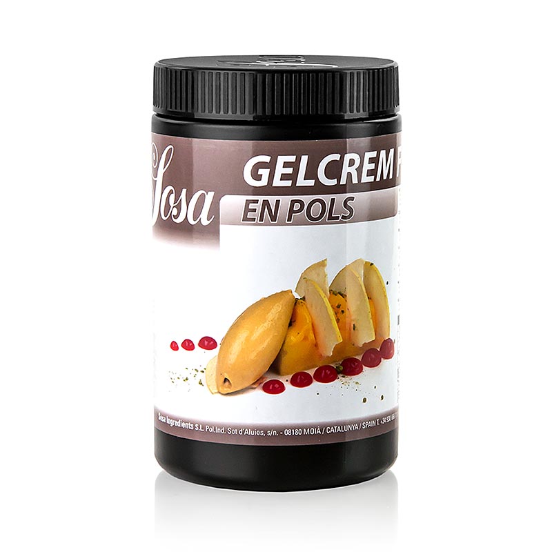 Gelcreme Pulver kalt; Verdickungsmittel: Texturgeber Konditrcreme, geschmacklos. Zutaten: modifizierte Kartoffelstärke: Acetyliertes Distärkephosphat E1414. Kann ohne Gewichtsverlust eingefroren werden. In kaltem oder warmem mischen. Dosierung: 40-80g/kg Kühl und trocken lagern.