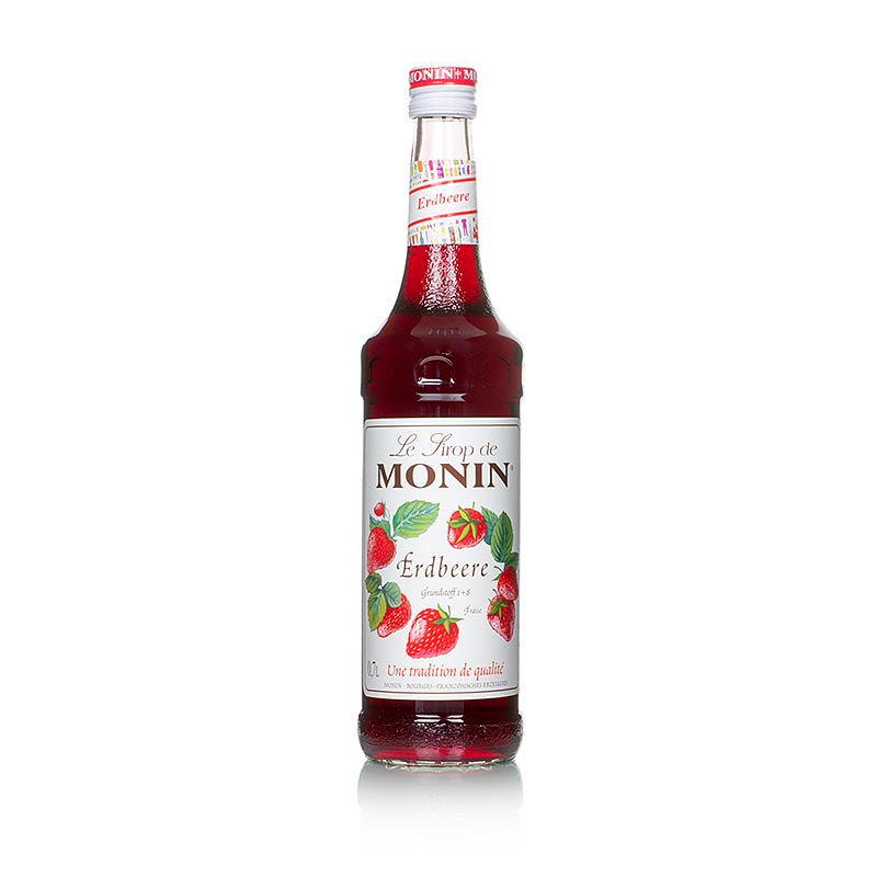 Le Sirop de Monin bietet vielfältige Möglichkeiten; es dient optimal als Zutat für phantasievolle Cocktails- mit oder ohne Alkohol. Ebenso kann es auch in der Küche verwendet werden; für Saucen, Desserts, Kuchen, aromatisierten Kaffee oder Sahne und Vieles mehr. Monin hat ein hohes Ansehen durch seine hochwertigen Produkte und das weltweit größte Sirup-Sortiment. Durch die außergewöhnlich hohe Konzentration der Sirups haben diese eine sehr gute Ergiebigkeit. Dieses Produkt schmeckt nach Erdbeeren.