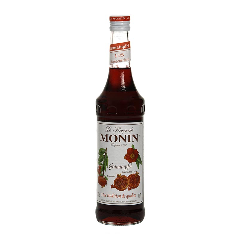 Le Sirop de Monin bietet vielfältige Möglichkeiten; er dient optimal als Zutat für phantasievolle Cocktails- mit oder ohne Alkohol. Ebenso kann er auch in der Küche verwendet werden; für Saucen, Desserts, Kuchen, aromatisierten Kaffee oder Sahne und Vieles mehr. Durch die außergewöhnlich hohe Konzentration der Sirupe haben diese eine sehr gute Ergiebigkeit. Dieses Produkt schmeckt nach Granatapfel ist allerdings nicht so süß wie Grenadiene