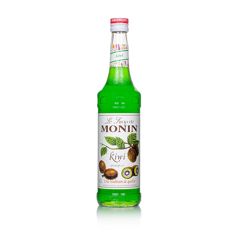Le Sirop de Monin bietet vielfältige Möglichkeiten; es dient optimal als Zutat für phantasievolle Cocktails- mit oder ohne Alkohol. Ebenso kann es auch in der Küche verwendet werden; für Saucen, Desserts, Kuchen, aromatisierten Kaffee oder Sahne und Vieles mehr. Monin hat ein hohes Ansehen durch seine hochwertigen Produkte und das weltweit größte Sirup-Sortiment. Durch die außergewöhnlich hohe Konzentration der Sirups haben diese eine sehr gute Ergiebigkeit. Dieses Produkt schmeckt nach Kiwi.