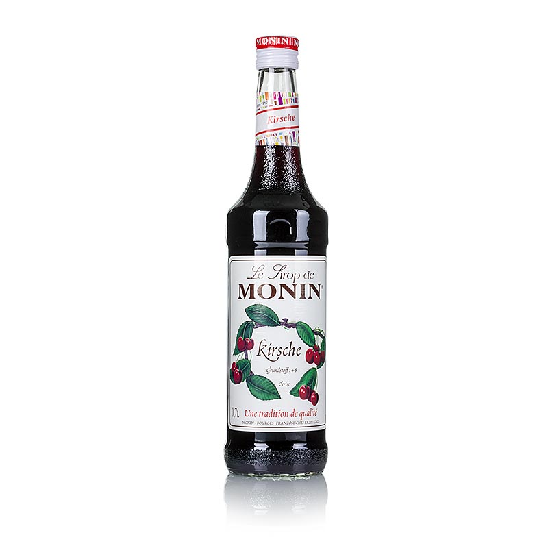 Le Sirop de Monin bietet vielfältige Möglichkeiten; es dient optimal als Zutat für phantasievolle Cocktails- mit oder ohne Alkohol. Ebenso kann es auch in der Küche verwendet werden; für Saucen, Desserts, Kuchen, aromatisierten Kaffee oder Sahne und Vieles mehr. Monin hat ein hohes Ansehen durch seine hochwertigen Produkte und das weltweit größte Sirup-Sortiment. Durch die außergewöhnlich hohe Konzentration der Sirups haben diese eine sehr gute Ergiebigkeit. Dieses Produkt schmeckt nach Kirschen.