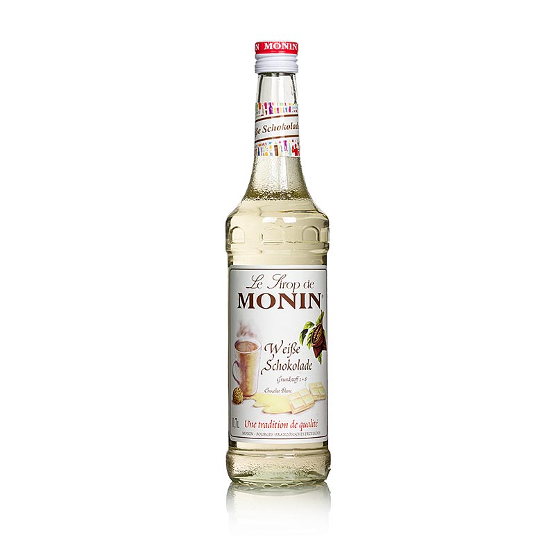 Le Sirop de Monin bietet vielfältige Möglichkeiten; er dient optimal als Zutat für phantasievolle Cocktails- mit oder ohne Alkohol. Ebenso kann er auch in der Küche verwendet werden; für Saucen, Desserts, Kuchen, aromatisierten Kaffee oder Sahne und Vieles mehr. Monin hat ein hohes Ansehen durch seine hochwertigen Produkte und das weltweit größte Sirup-Sortiment. Durch die außergewöhnlich hohe Konzentration der Sirups haben diese eine sehr gute Ergiebigkeit. Dieses Produkt schmeckt nach weißer Schokolade.