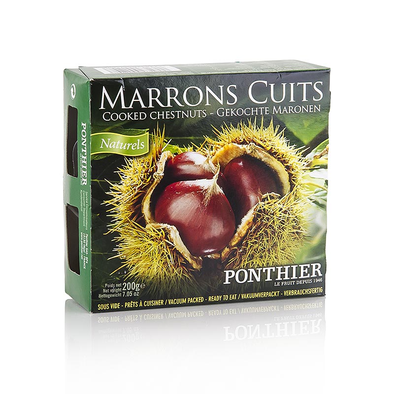 Ponthier-Maronen sind gebrauchsfertig vorgekocht. Sie zerfallen nicht beim Aufwärmen, bleiben zart und bewahren ihren unvergleichlichen Geschmack. Traditionell begleiten die Esskastanien Fleisch, Wild und Geflügel als Füllung oder Beilage. Auch in Verbindung mit Fischen wie Seezunge oder Seeteufel sind die aromatischen Früchte der Edelkastanie zu empfehlen. Ebenso ergänzen sie rustikale Salate oder können für Bratapfelfüllungen sowie in Feingebäcken verwendet werden.