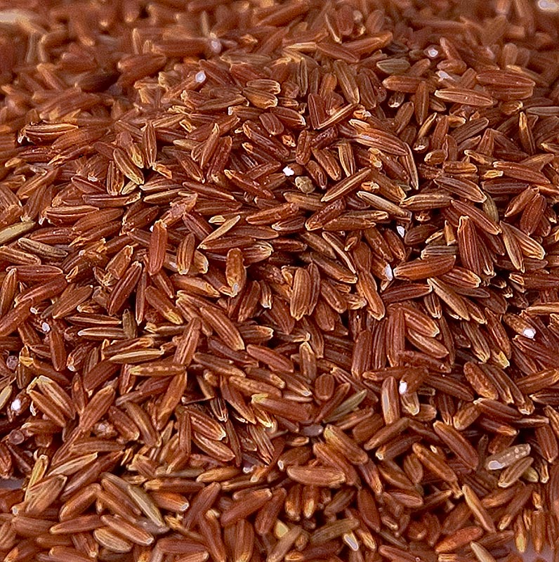 Dieser Mittelkornreis mit roter Außenhaut wird in Arles/Südfrankreich angebaut. Der rote Reis war dort auf Laterit-Erde durch Spontanmutation entstanden und wurde durch weitere Auslese zur heutigen Sorte kultiviert. Der ungeschliffene Reis ist bißfest und körnig und hat ein nussiges Aroma. Ideal für Salate, Aufläufe oder als diverse Beilage. Kochzeit 40 - 45 min. danach 10 min quellen lassen