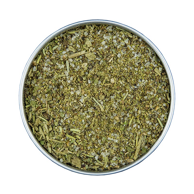 Gewürzsalz. Zutaten: Meersalz, Pfeffer schwarz, Knoblauch, Lorbeerblätter, Piment, Koriander, Muskat, Salbei, Rosmarin, Majoran. Eigenschaften: Es müssen keine Nährwerte angegeben werden.