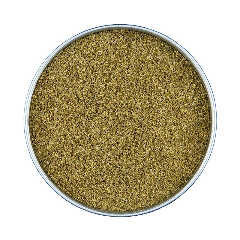 Gewürzsalz. Zutaten: Salz, Kala Namak Salz, Cumin, Pfeffer, Amchoor, Koriander, Grantapfelkerne, Ingwer, Kümmel, Ajowan, Sternanis, Macis, Minze, Gewürznelke, Kardamom, Asant, Bockshornklee, Chili. Vorischtig dosieren! Hergestellt und abgefüllt in Deutschland. Eigenschaften: Es müssen keine Nährwerte angegeben werden.