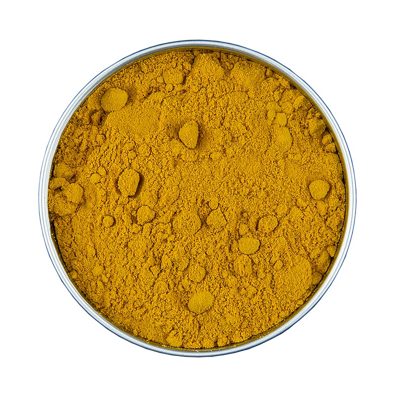 Gelbwurzel, Tumeric. Kurkuma, oft als Safranersatz genutzt, hat wesentlich mehr zu bieten als Farbe. Kräftiges, fein bitteres Aroma. Achtung, Kurkumaflecken nur mit Alkohol und nicht mit Wasser entfernen. Verwendung: Kurkuma passt zu Auberginen, Bohnen, Eiern, Fisch, Fleisch, Geflügel, Reis, Spinat, Chili, Fenchel. Sowie zu Gerichten mit Hülsenfrüchten, Kartoffeln und natürlich Currys.