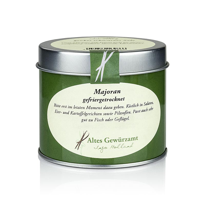 Majoran, gefriergetrocknet. Zutaten: Majoran. Etwas Flüssigkeit zufügen und nicht zu lange mitkochen. Eigenschaften: Es müssen keine Nährwerte angegeben werden.