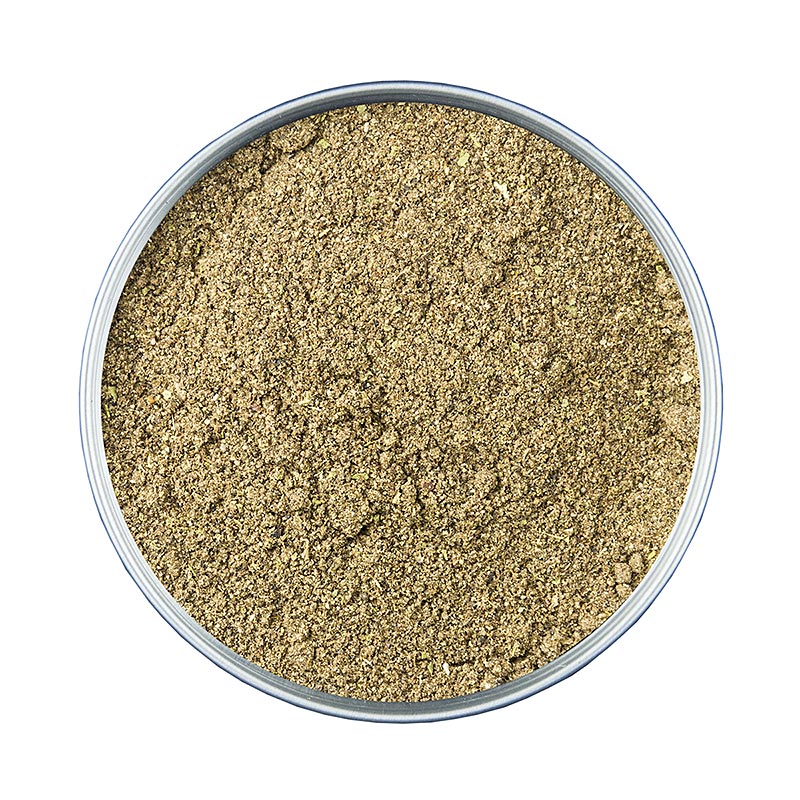 Gewürzmischung. Zutaten: Pfeffer schwarz, Knoblauch, Wacholderbeeren, Kakao 100%, Ingwer, Zimtblüten, Vanille Madagaskar, Orangenblüten, Sternanis, Süßholzsaft, Lorbeerblätter, Gewürznelken. Hergestellt und abgefüllt in Deutschland. Eigenschaften: Es müssen keine Nährwerte angegeben werden.