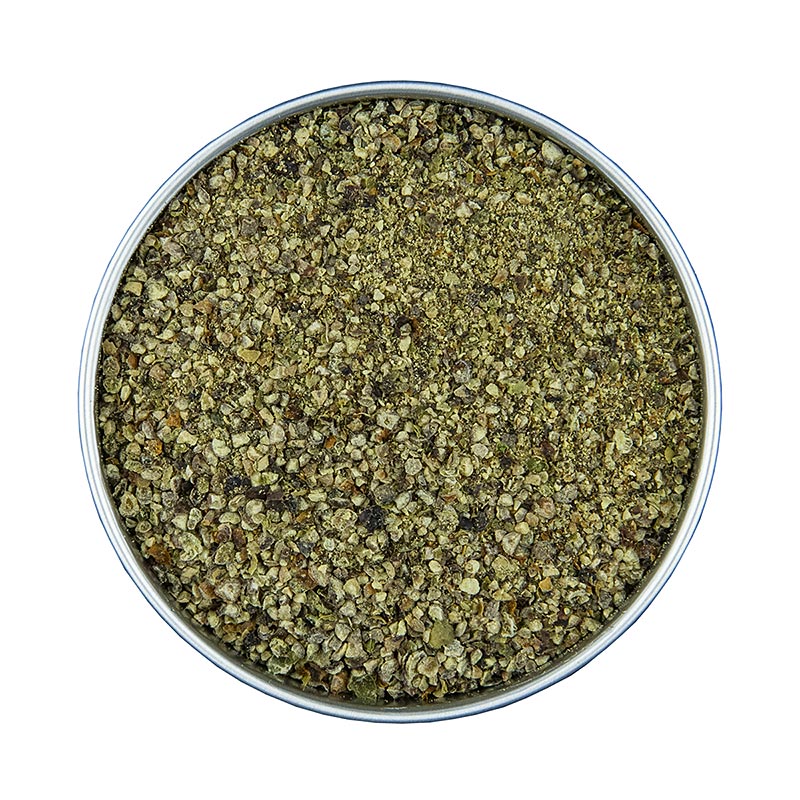 Gewürzmischung Jahreszeiten. Zutaten: Pfeffer grün, schwarz, weiß, rot, Tellicherrypfeffer. Eigenschaften: Es müssen keine Nährwerte angegeben werden.
