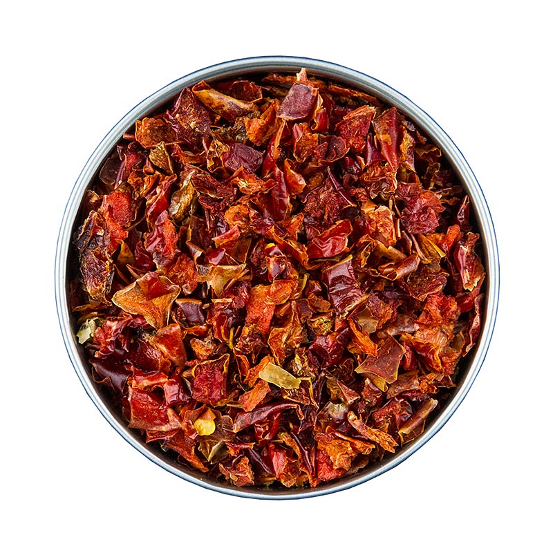 Rote Paprika getrocknet und zerkleinert. Zutaten: rote Paprikaflocken. Eigenschaften: Es müssen keine Nährwerte angegeben werden.