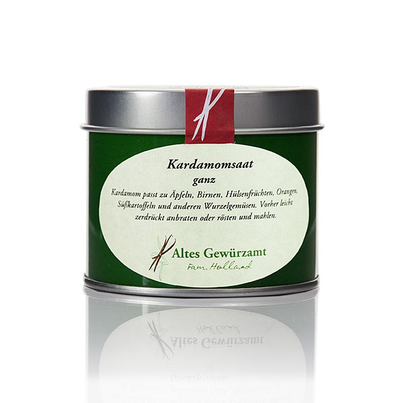 Kardamomsaat, ganz. Zutaten: Kardamomsaat. Kühl, trocken und lichtgeschützt lagern. Eigenschaften: Es müssen keine Nährwerte angegeben werden.
