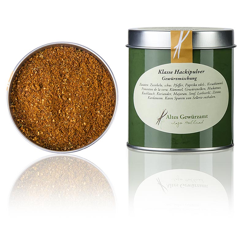 Die "Klasse Hackipulver" Gewürzmischung stammt aus der Gewürzlinie von Ingo Holland, welche er eigens für Spitzenkoch Tim Mälzer entwickelte. Für Frikadellen, Buletten, Hackbraten, Haschees, Fleischfüllungen, Klopse usw.
