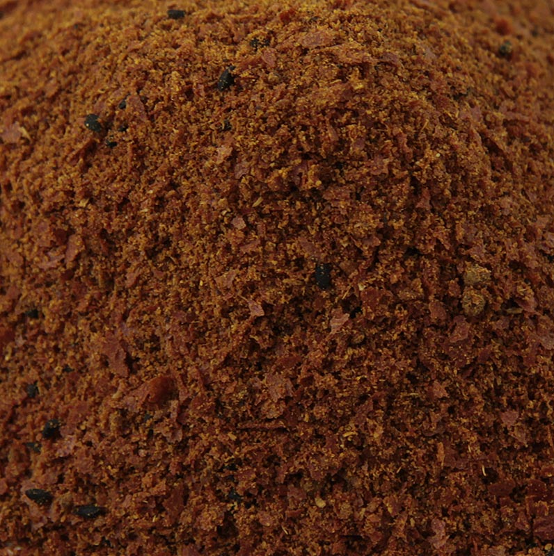 Gewürzzubereitung mit pikanter Schärfe. Zutaten: Tomaten, Röstzwiebeln (Zwiebeln, pfl. Öl, Buchweizenmehl, Salz), Ingwer, Koriander, Pfeffer, Cumin, Nigella, Paprika, Knoblauch, Kurkuma, Amchoor, Zimt, Piment, Chili, Macis, Nelken, Bockshornklee, SENF, SELLERIE, Lorbeer. Eigenschaften: Es müssen keine Nährwerte angegeben werden.
