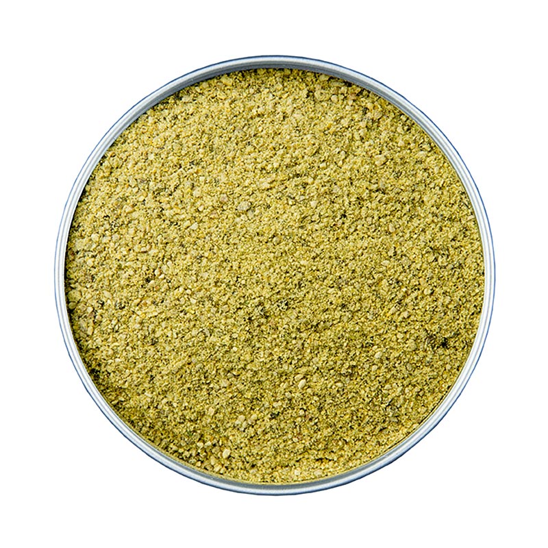 Zitronen-Pfeffer Gewürzmischung. Zutaten: Pfeffer schwarz, Zitronenschale gefriergetrocknet, Zitronenmyrte. Kühl, trocken und lichtgeschützt lagern. Hergestellt und abgefüllt in Klingenberg, Deutschland. Eigenschaften: Es müssen keine Nährwerte angegeben werden.