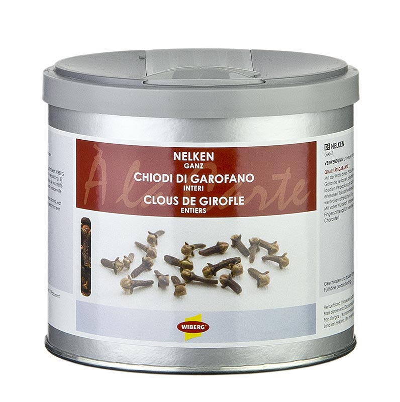 Nelken, ganz; warm-aromatisch, brennend-würzig und intensiv im Geschmack. Ideal zu Fonds, Saucen, Marinaden, Fleisch, Geflügel, Wild, Wildgeflügel, Schinken, Reisgerichten und diversen Süßspeisen. Das traditionsreiche Familienunternehmen WIBERG hat das Rezept für mehr Geschmack, mehr Sorgfalt und Know-how bei der Auswahl der Rohstoffe, mehr Qualitätskontrollen und mehr Genuss durch ein spezielles Frisch-Mahlverfahren.
